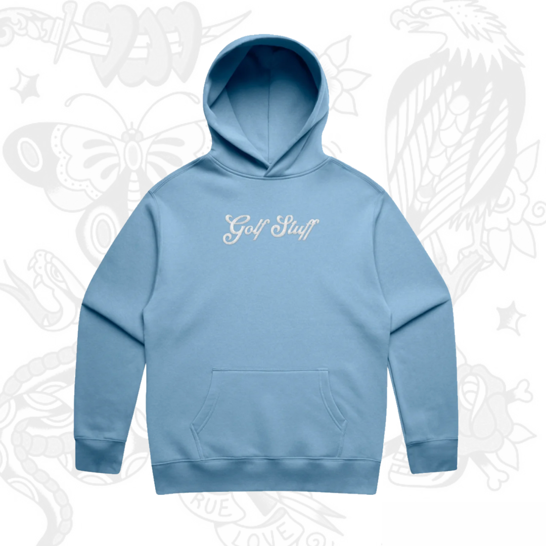The Golf Stuff Carolina hoodie is the perfect mid-weight hoodie for on and off the course. Extremely comfortable, this hoodie crafted from 80% cotton 20% ring-spun recycled polyester fleece. This hoodie features a cozy pull over hood lined with self-fabric. This hoodie also features cotton cuffed ribbing on the sleeves, while the front pocket adds practicality. Showcasing Golf Stuff's signature embroidered logo prominently on the chest.