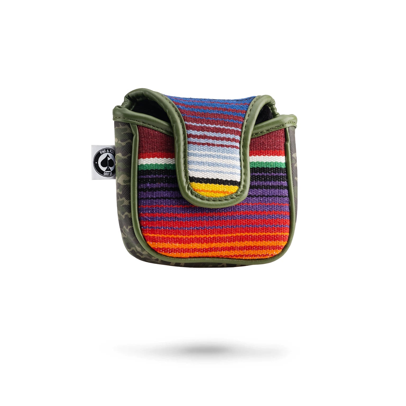 Stylize and customize the look of your golf bag with this high quality, hand-made putter headcover. Featuring hand sewn panels and faux mustache with embroidered Sugar Skull design. The lower part of this cover is made from an authentic Mexican blanket. NOTE: each cover will be unique with a different cut of the blanket.Â